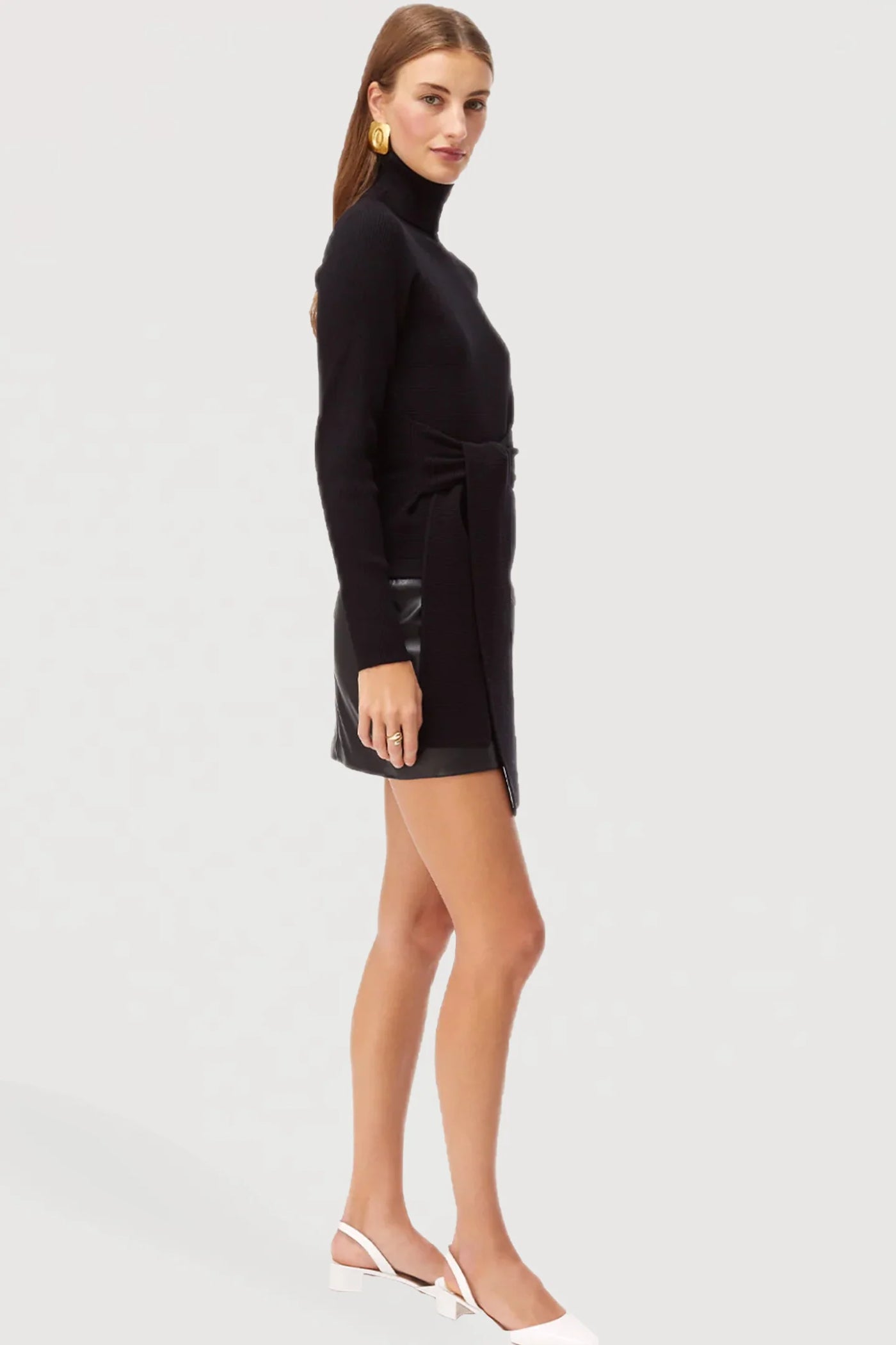Brielle Long Sleeve Tie-Front Turtleneck in Jet