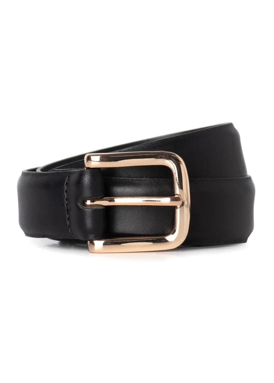 Genuine leather belt with a smooth finish and elegant gold buckle. A timeless accessory that adds a touch of refinement to all your outfits from structured suits to flowing dresses.