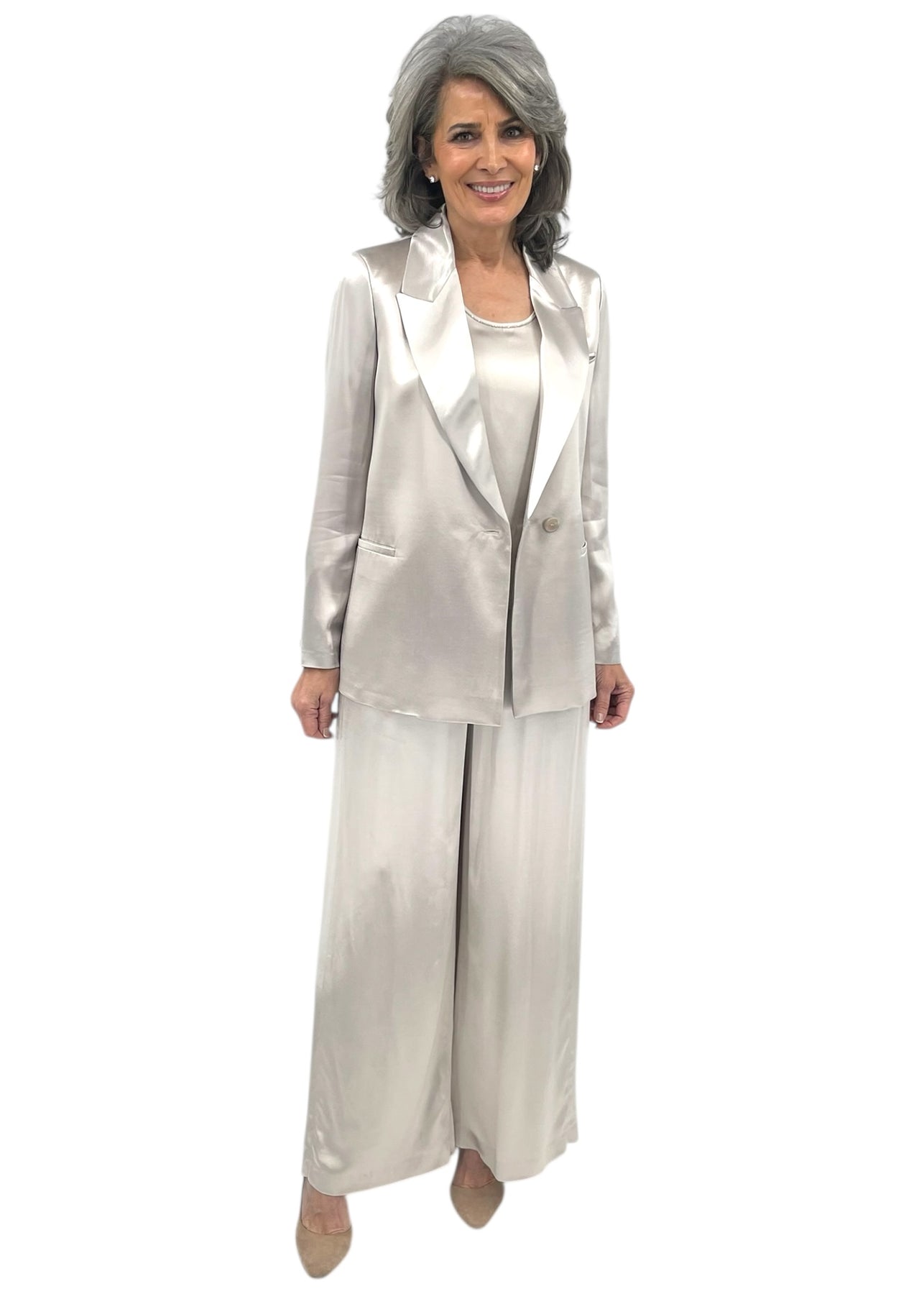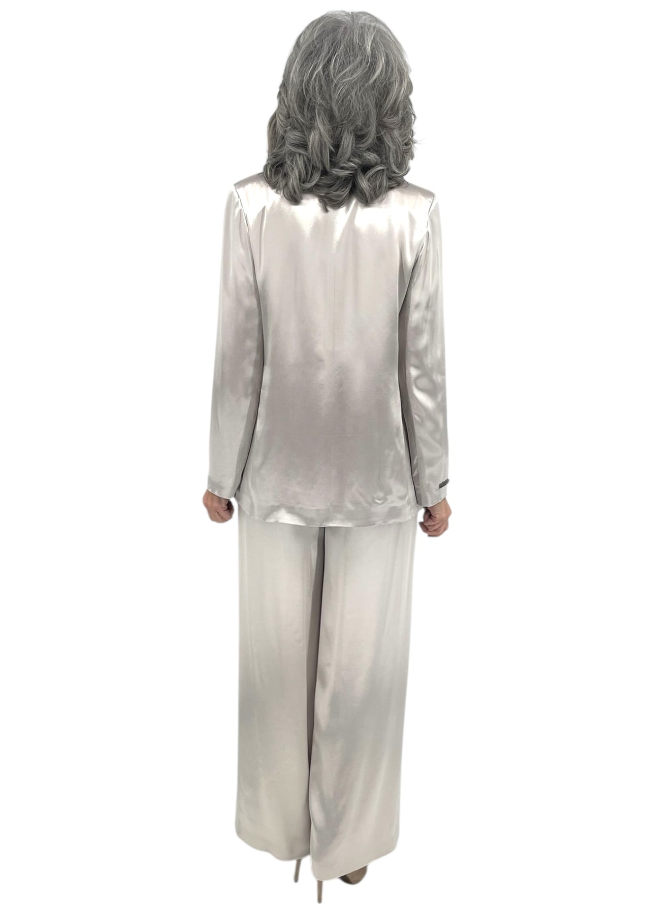 An interplay of light and movement characterizes this jacket in fluid viscose satin, a material that envelopes the figure with lightness and naturalness. The fabric gently captures reflections with every movement.