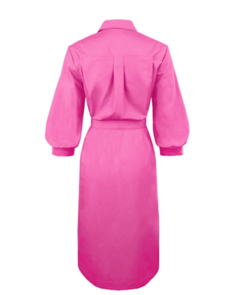 The Finley Midi Clementine Dress combines classic tailoring with everyday practicality. Cut in a flattering A-line silhouette, it features a traditional spread collar, button-front fastening, and three-quarter sleeves that land at a sophisticated midi length—approximately 45 inches from shoulder to hem.