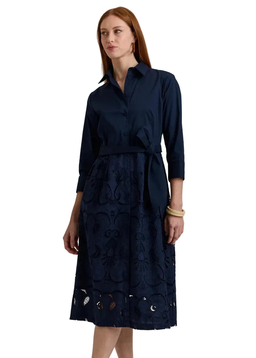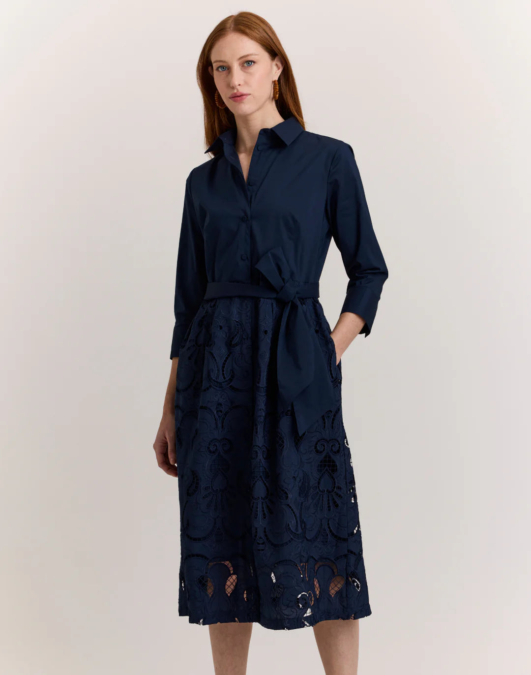 Robin 3/4 Sleeve Eyelet Embroidery Dress in Navy