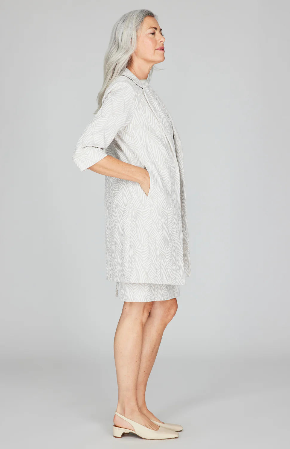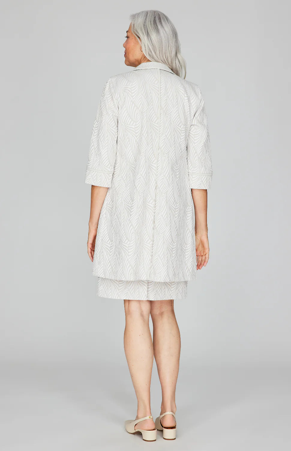 Tonal Botanic Stretch Jacquard Long Blazer w/ Bias Trim in Stone