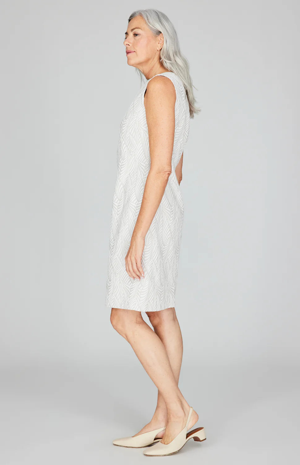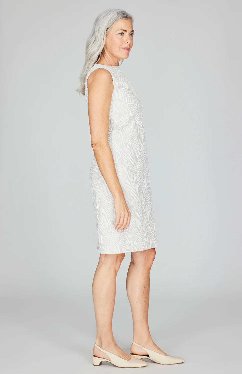 Tonal Botanic Stretch Jacquard Sleeveless Sheath Dress w/ Bias in Stone