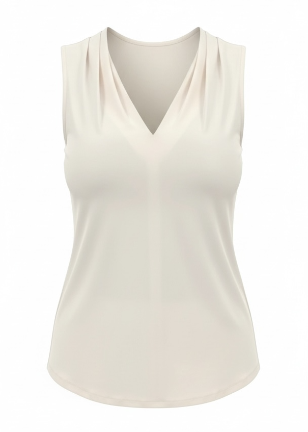 Matte Jersey Sleeveless Pleated V-Neck Top in Bone