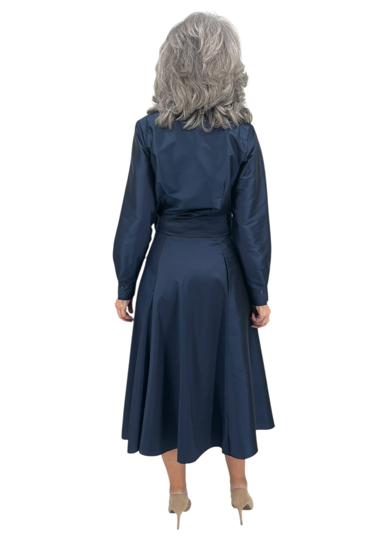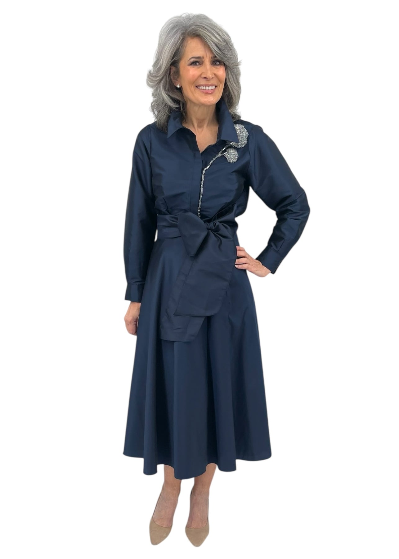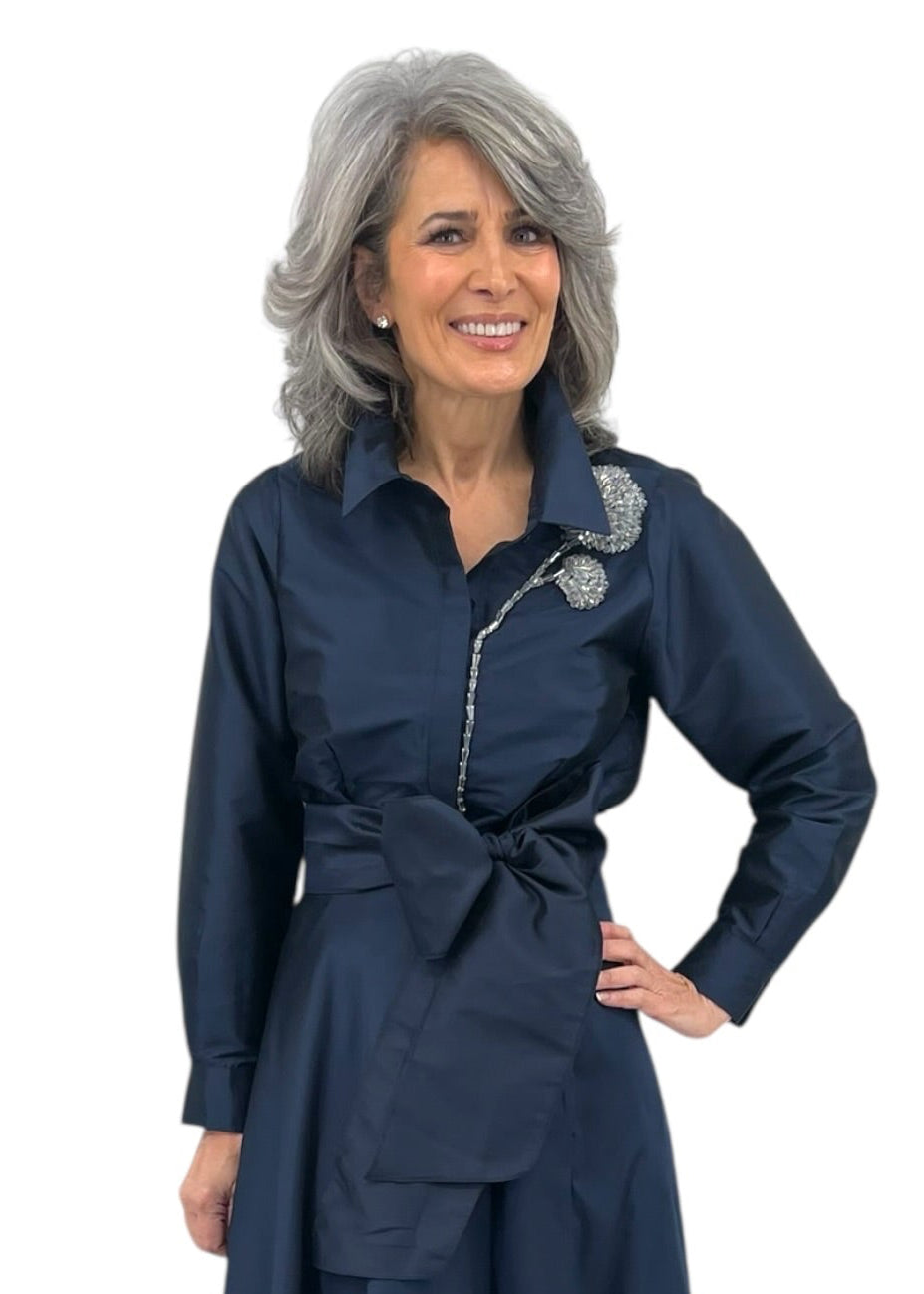 Taffeta Blouse w/ Crystal Peony in Navy