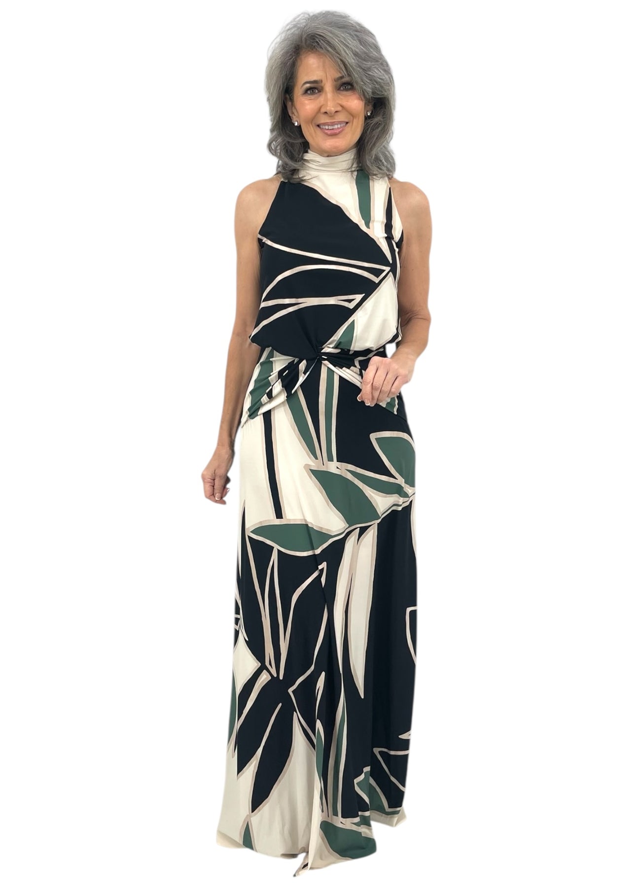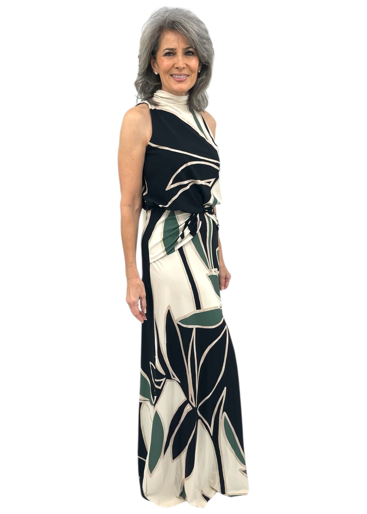 The Kanji Print SPL Gown in Tula features an intricate design suitable for garden parties. Its long silhouette provides coverage while maintaining elegance, allowing for ease of movement. The fabric composition and print contribute to a visually appealing aesthetic, enhancing the overall event experience.