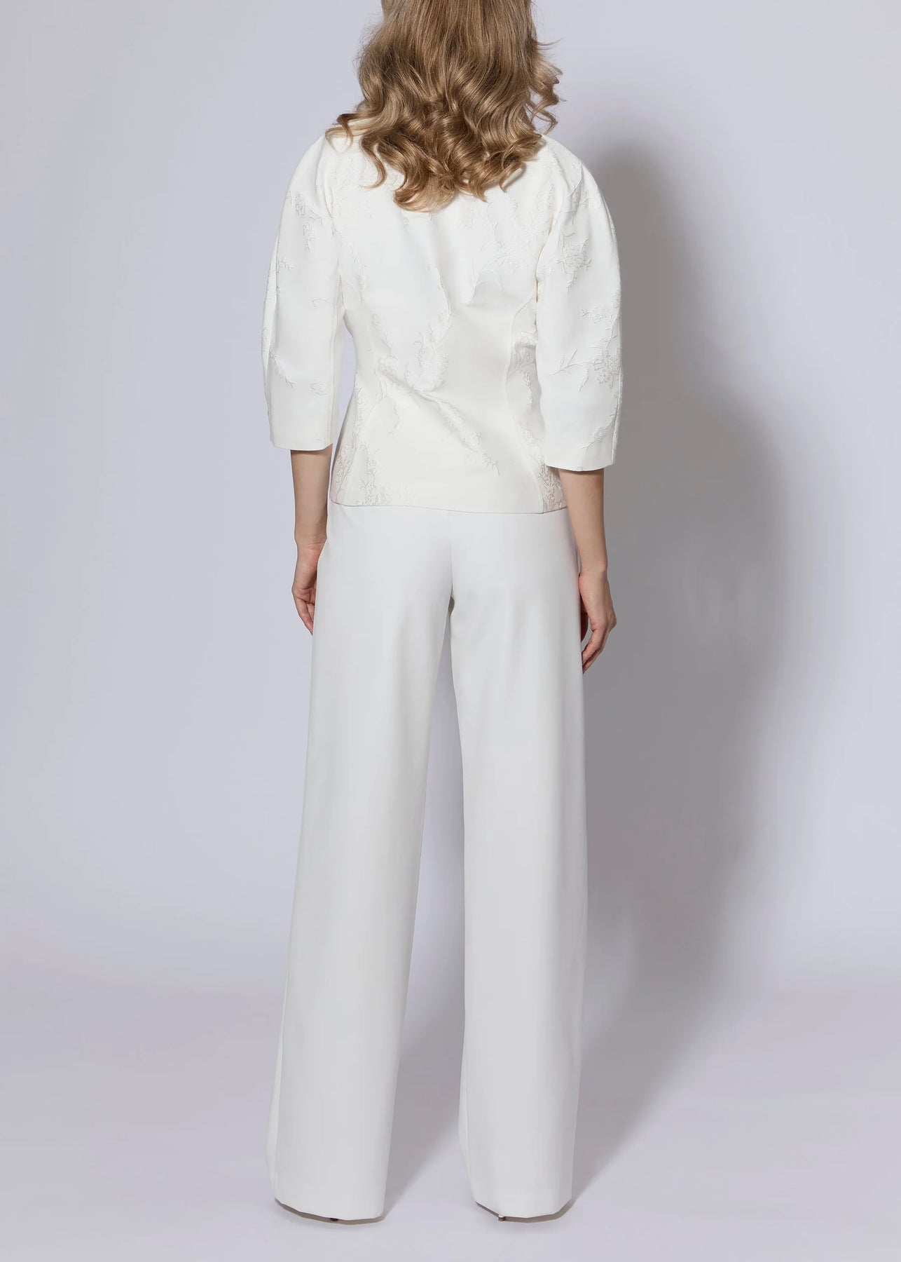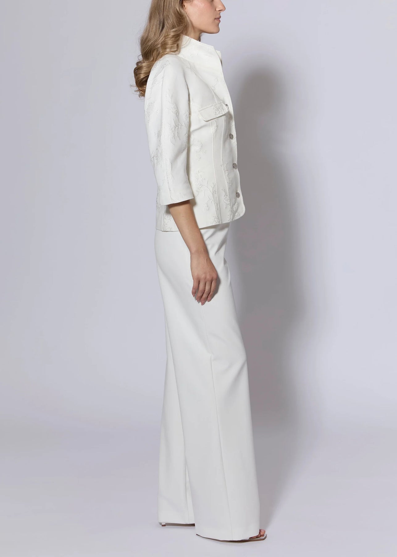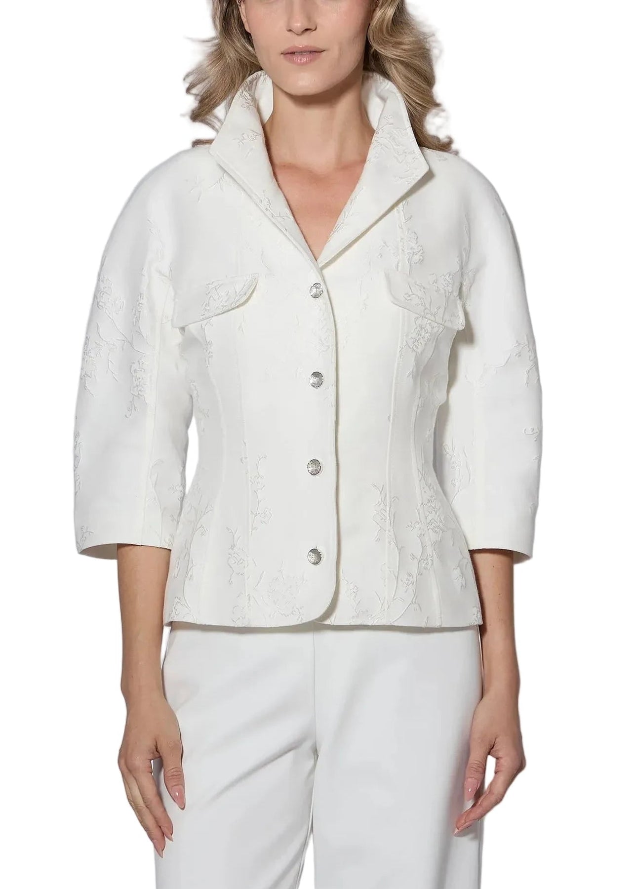 Beautifully designed Italian jacquard Jacket in chalk with delicate Cherry Blossom design.