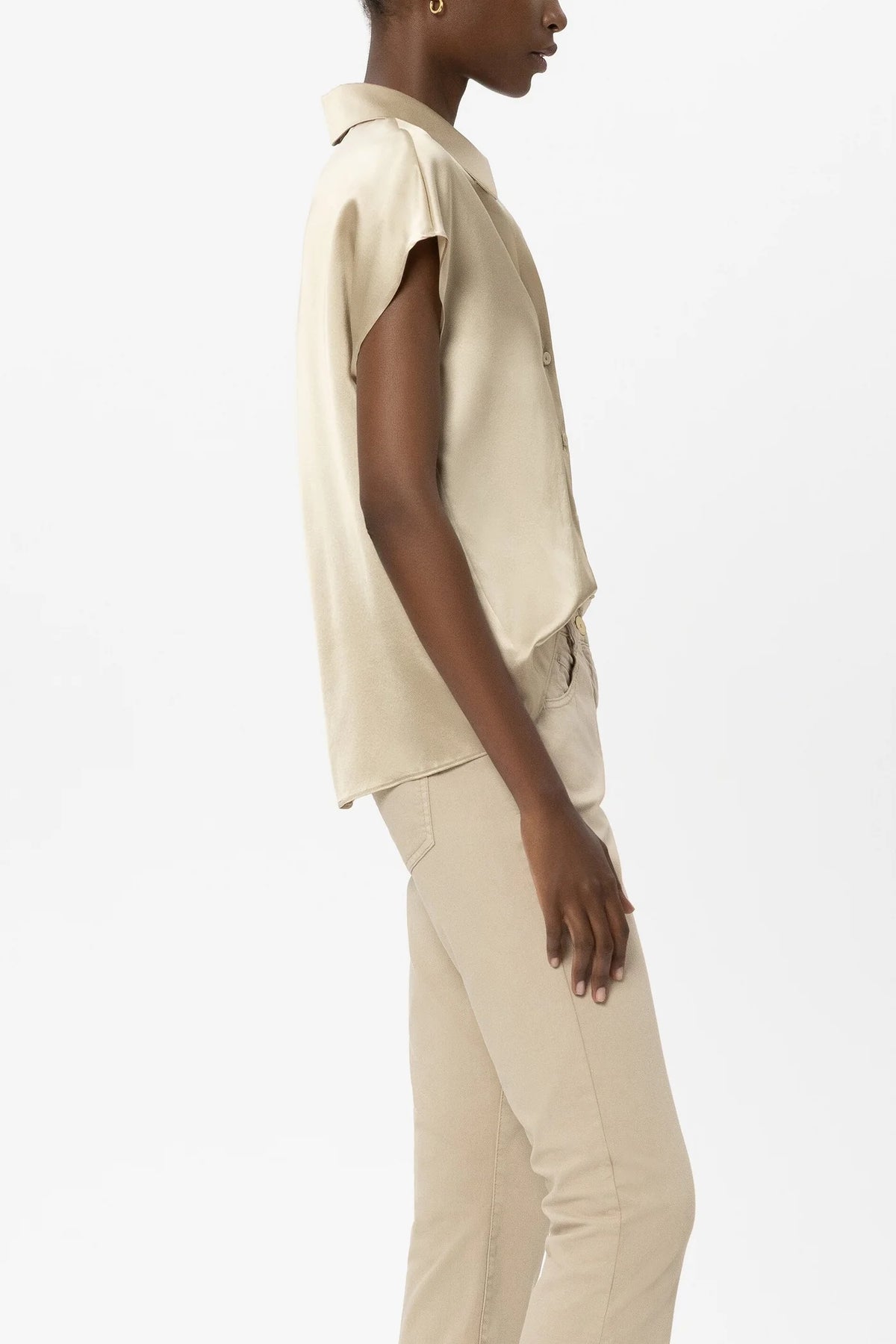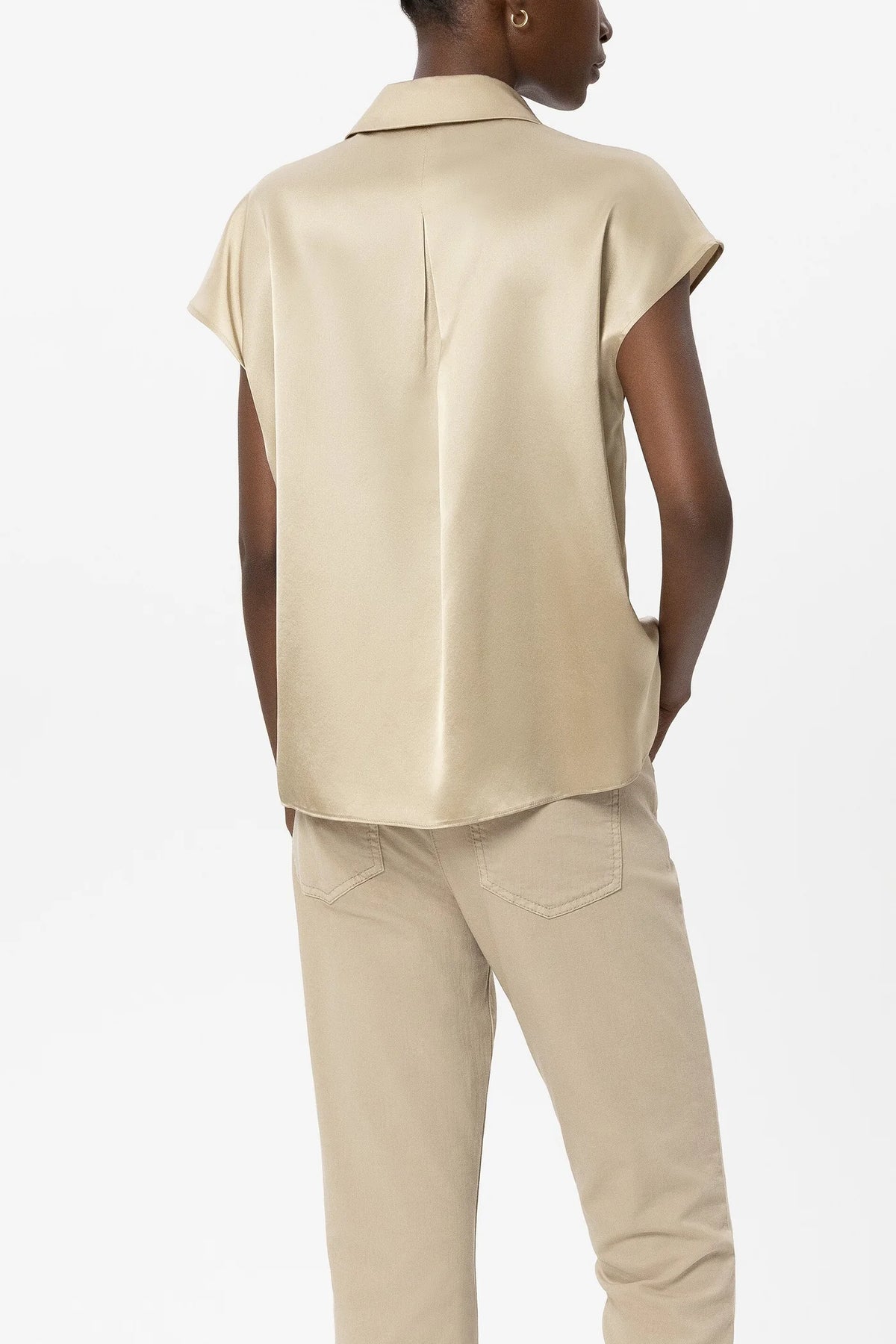 Flowing top made from luxurious 100% silk. Effortless elegance meets everyday comfort in this luxurious silk top. The fluid drape and soft sand tone create a refined silhouette that transitions seamlessly from day to evening. Crafted from premium 100% silk, it's the perfect layering piece or standalone statement. Imported quality with gentle hand-wash care to preserve its natural beauty and movement.
