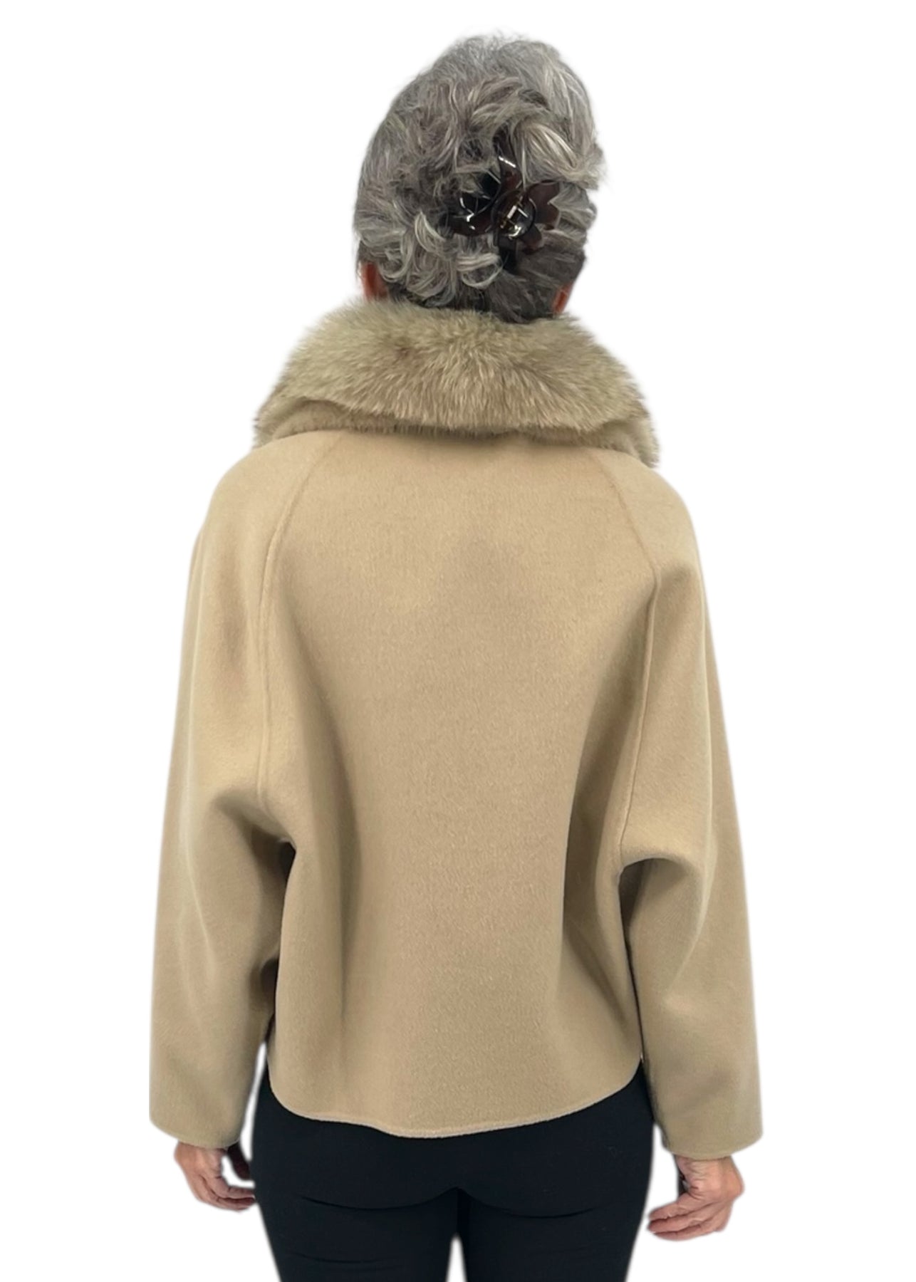 This luxurious Wool Blend Bomber in Irish Cream exudes sophistication and style. Crafted from a soft wool blend fabric, the bomber features a plush fur collar for added warmth and a timeless look. Experience elegance every time you slip into this sophisticated jacket.