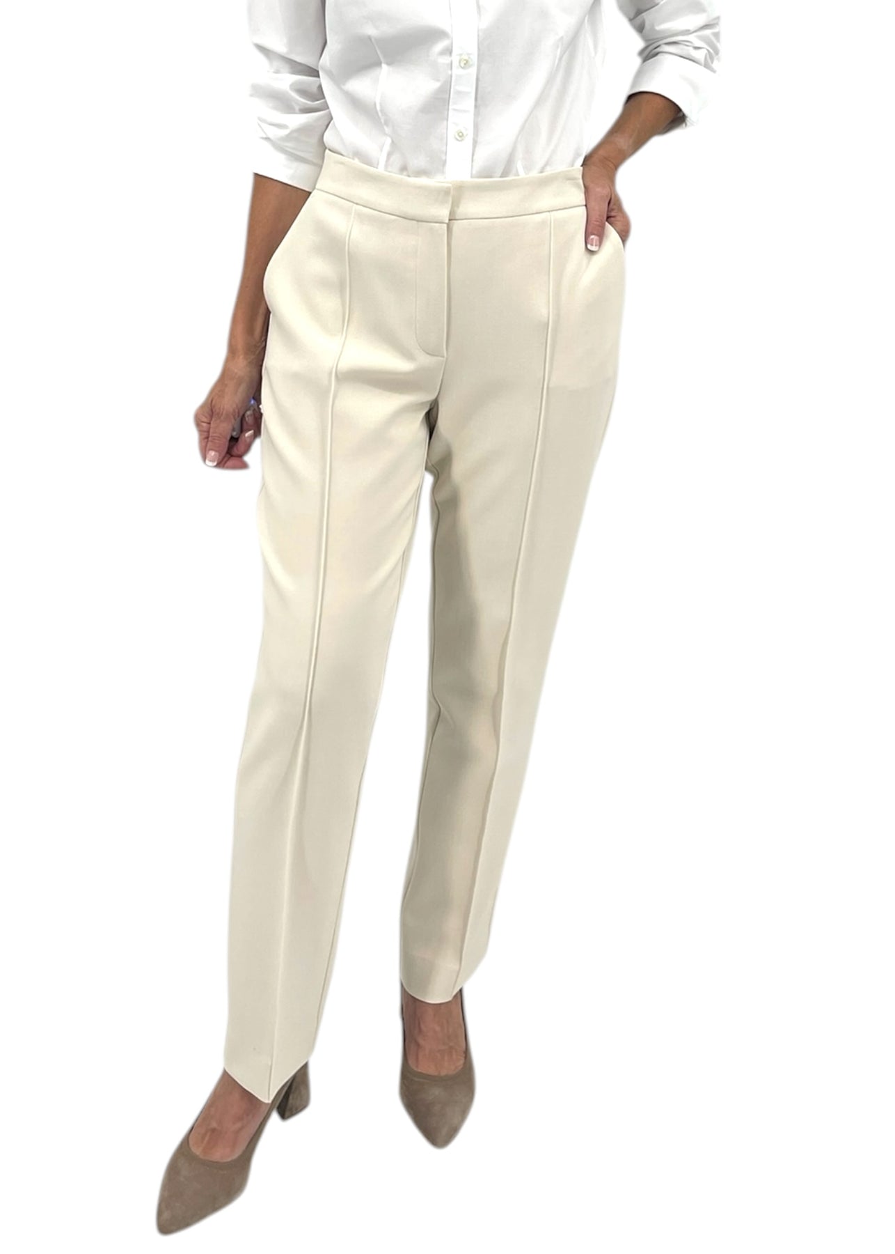 Elevate your wardrobe with these Straight Leg Pintuck Trousers in Bone. Crafted for a refined silhouette, the crisp pintuck detail enhances the sleek, straight-leg cut, offering a timeless and polished look. The neutral bone shade provides versatile elegance, perfect for both professional settings and sophisticated casual outings. Comfortable yet structured, these trousers are an essential piece for a chic, modern ensemble.
