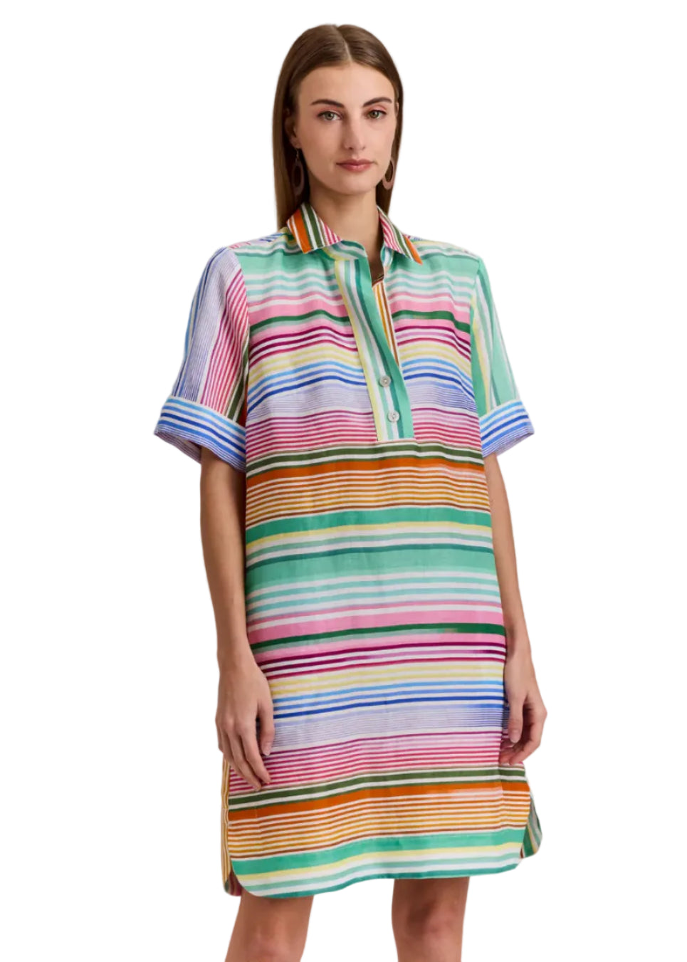 Aileen Short Sleeve Multi Linen Stripe Dress