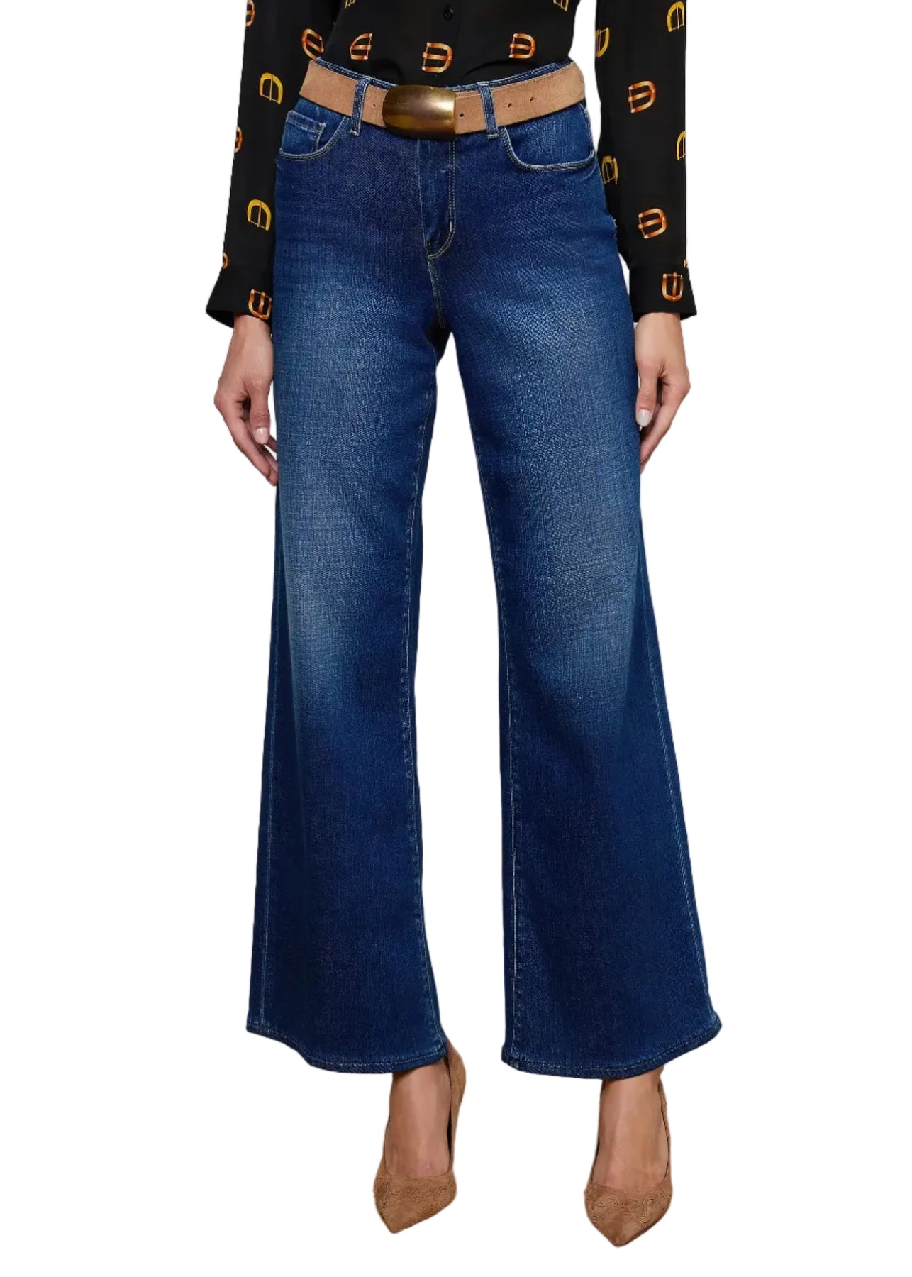 The ultimate sneaker length wide-leg jean. This L’AGENCE bestseller is back in a dark indigo wash with slight fading designed to contour the leg for a flattering, lengthening effect.