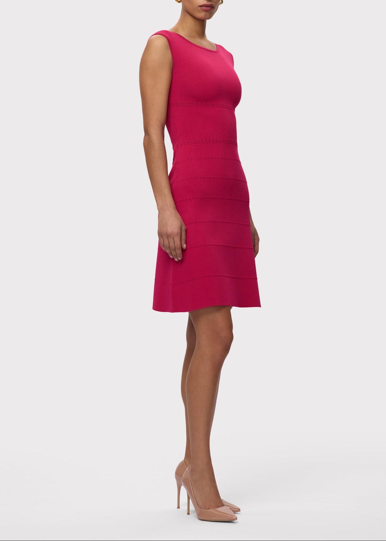 The Lark Dress is a structured fit & flare style cut from a pointelle-stitch compact knit. The versatile sleeveless dress features a rounded boatneck and center-back zip.
