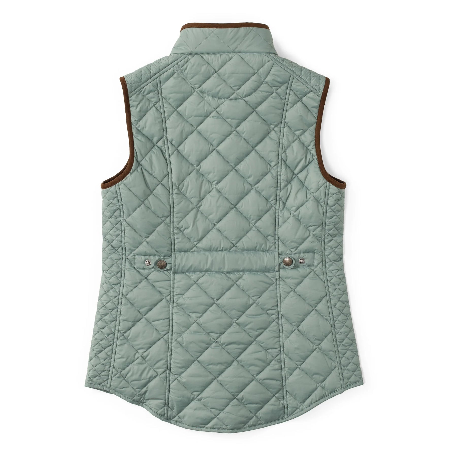 The Vista Vest is a stylish yet functional layer designed for those who appreciate the blend of elegance and versatility. With a gorgeous feminine cut that will flatter every shape, this vest is crafted from lightweight nylon with a diamond-quilted pattern, offering warmth without bulk. The zip front closure is complemented by a storm flap with Madison Creek's signature "MC" branded pewter snaps, while the contrast microsuede trim adds a touch of refinement. The belted adjustable back allows for a tailored silhouette, and the two lower slant pockets with magnetic closures provide both convenience and a sleek finish.