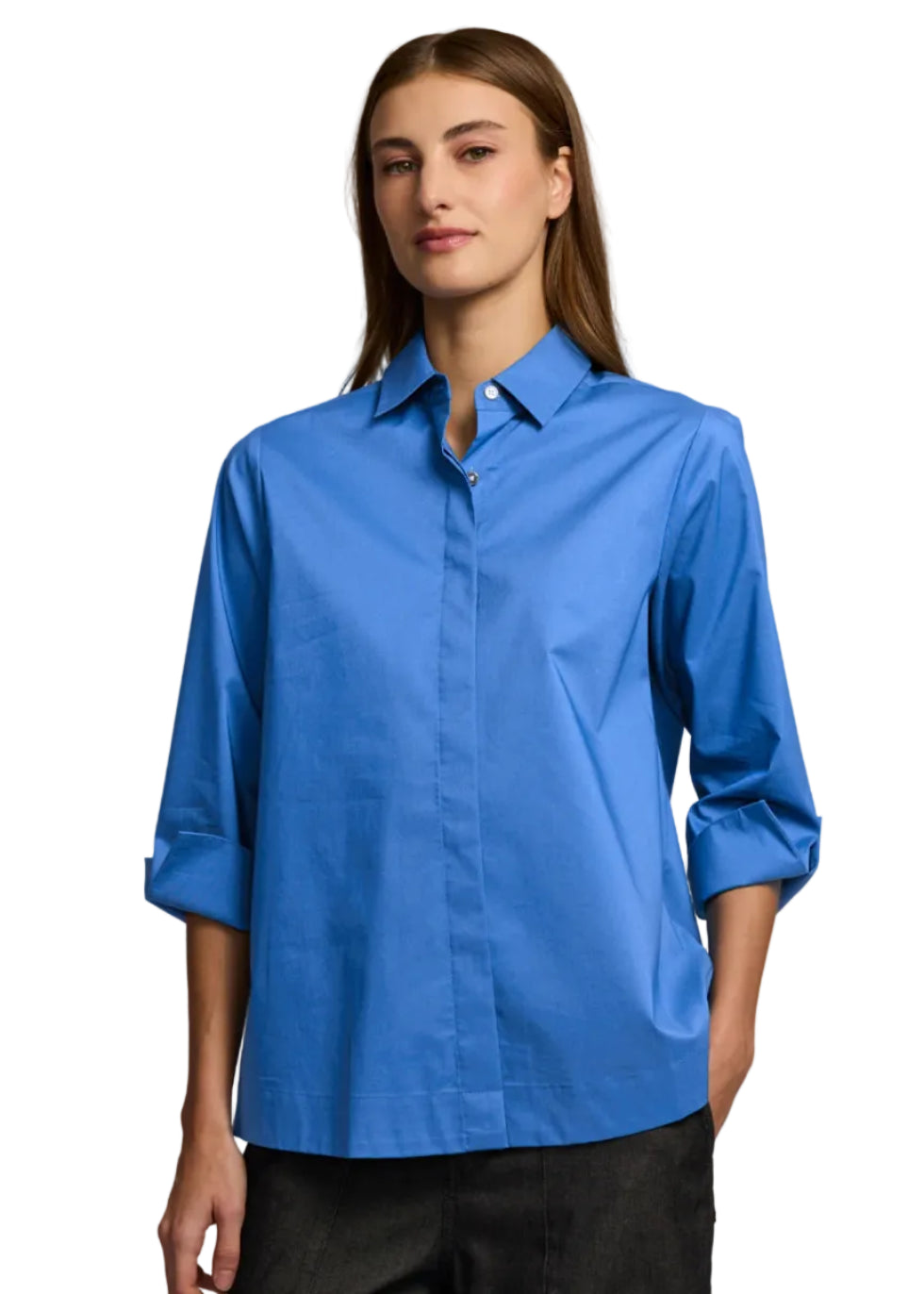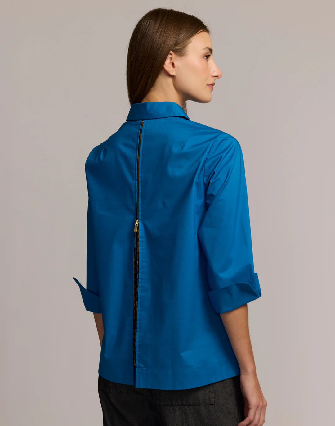 Xena 3/4 Sleeve Zip Back Blouse in Lake Blue