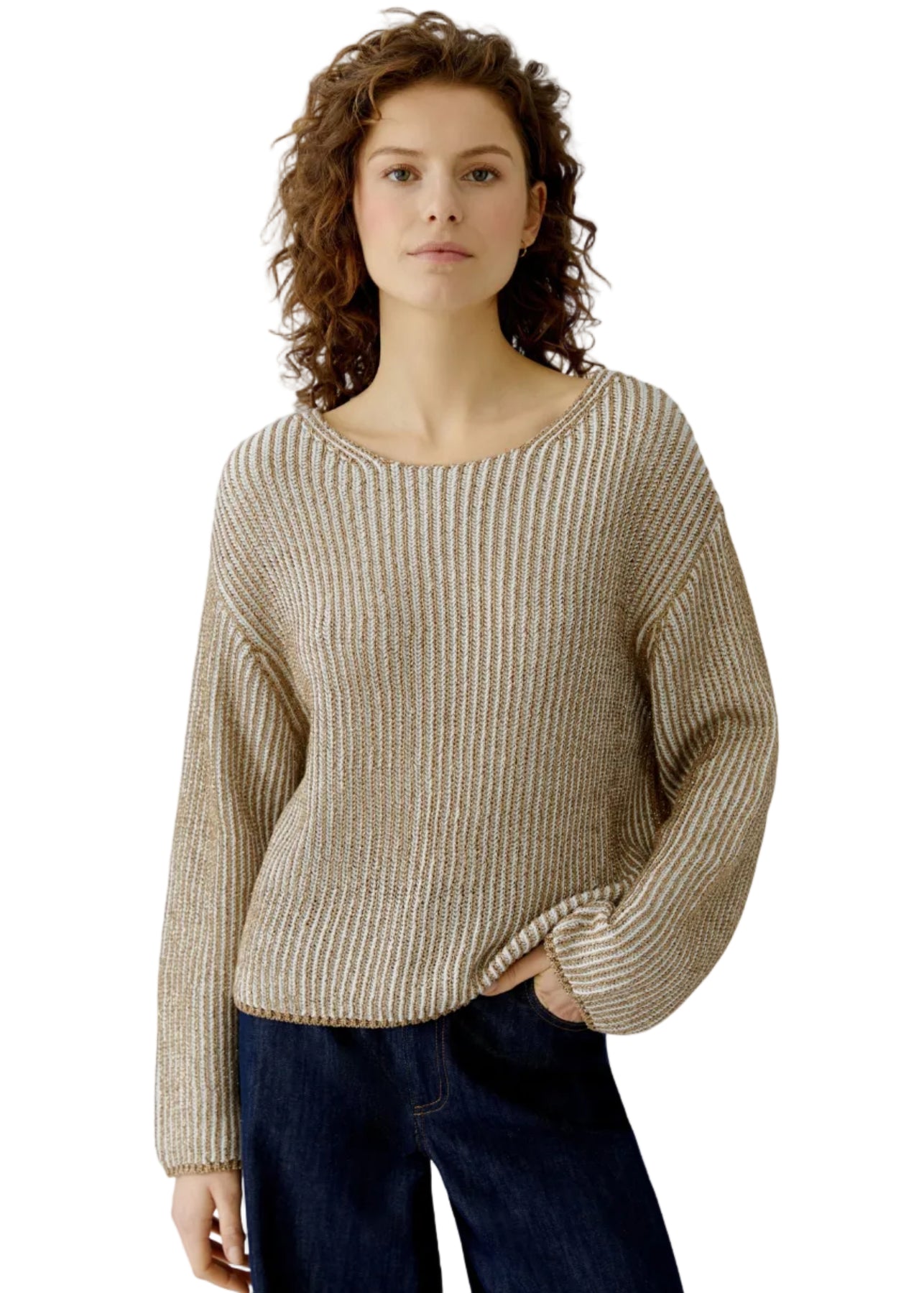 Highlight Pullover in vanisé technique creates a two-tone ribbed look with a subtle sheen for a distinctive appearance