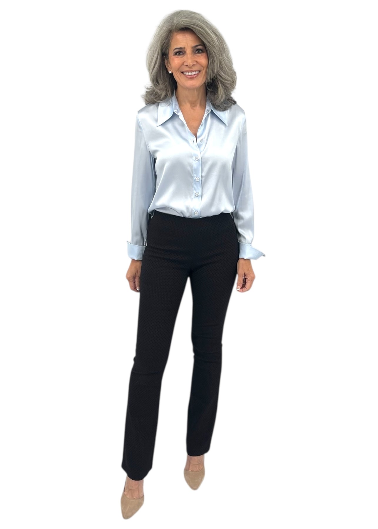 Effortlessly stylish and comfortable, the Miley Bootcut Diamond Pant in Deep Brown is made with lightweight fabric and a great design. Perfect for all-day wear, these pants offer both fashion and function. Upgrade your wardrobe with this must-have essential.
