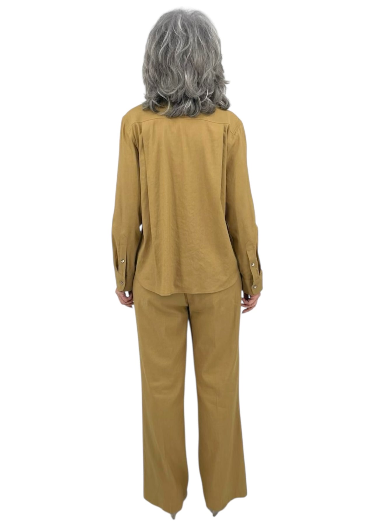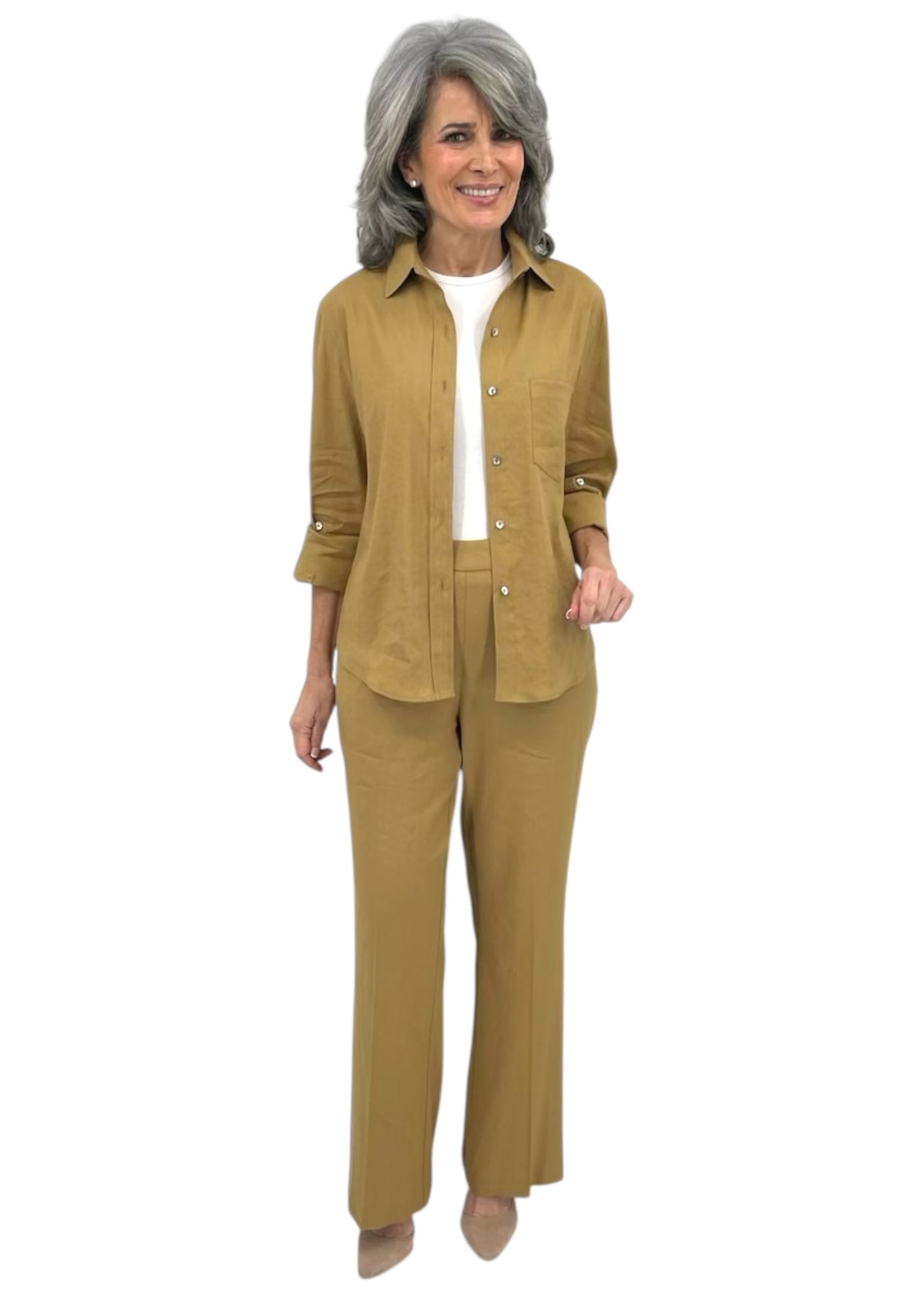 Stretch Linen Pull on Wide Leg Pants in Caramel
