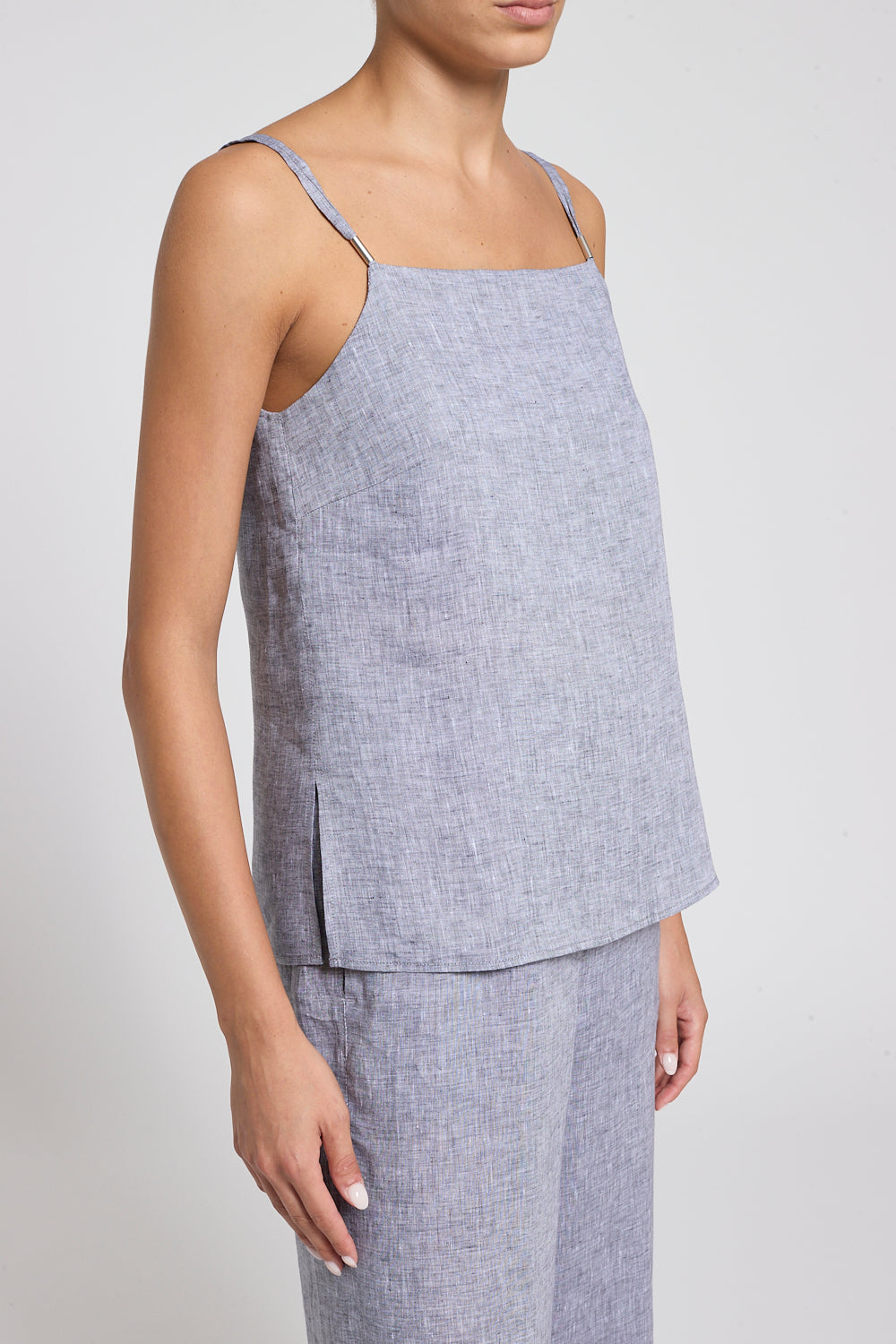 This top is crafted from lightweight linen, a natural fiber that guarantees freshness, breathability and comfort, making it ideal for the warmer months.