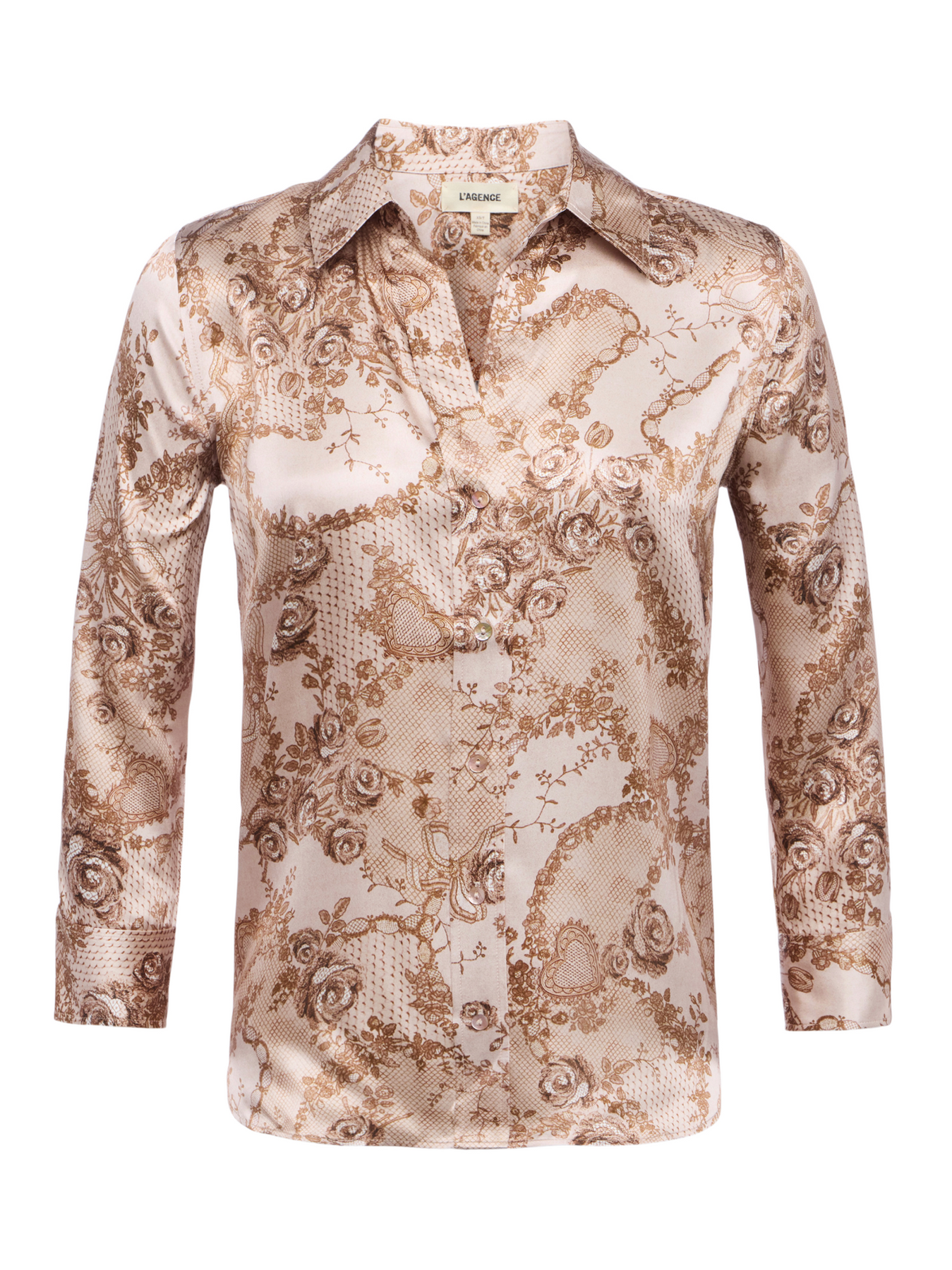 Dani Silk Blouse in Toasted Almond Lace Print