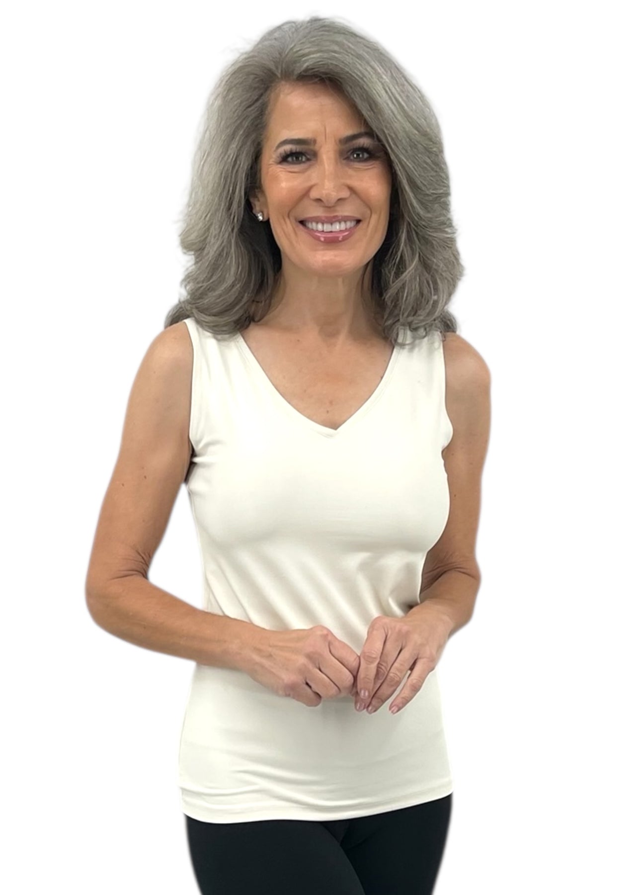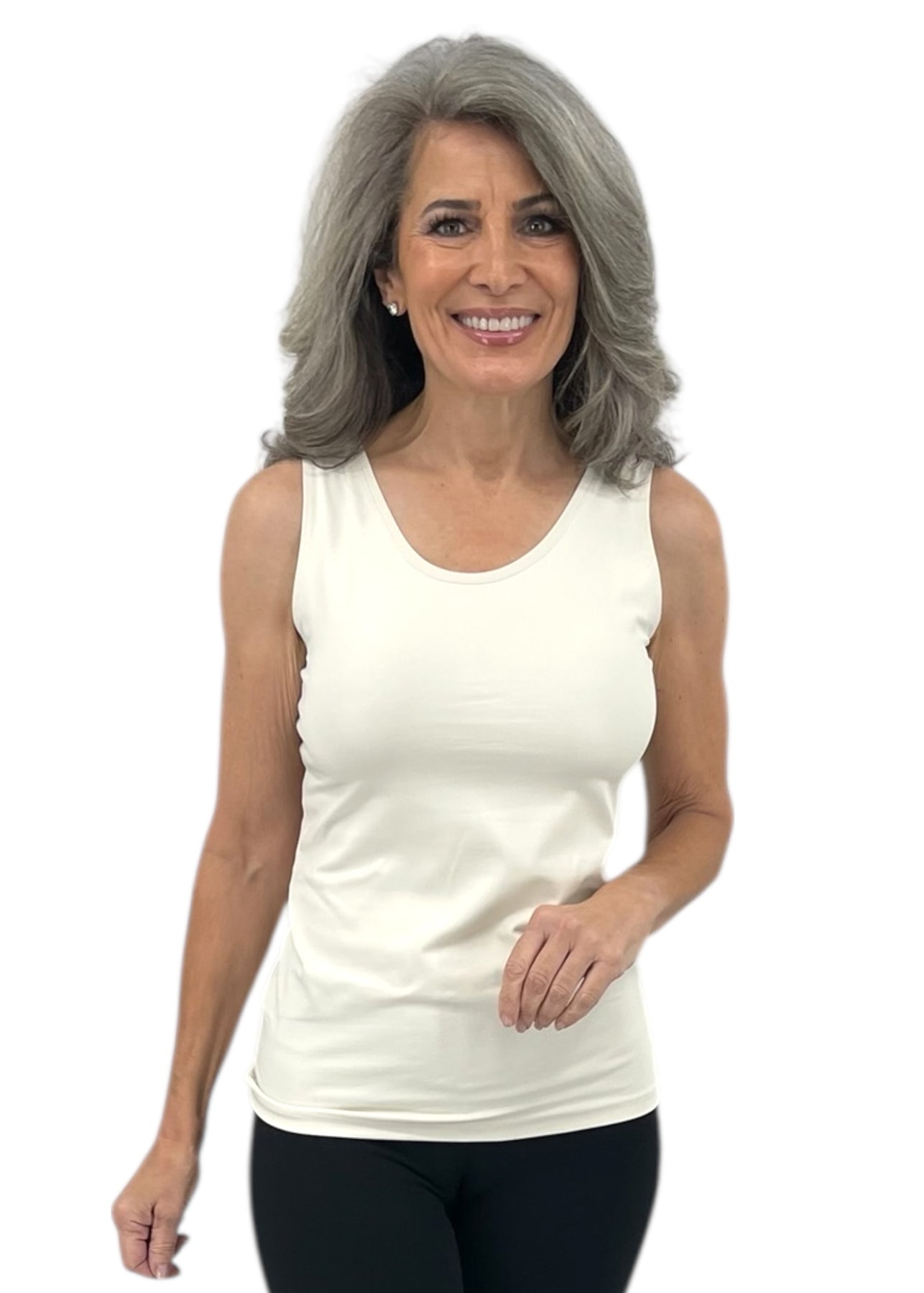 This double-duty basic tank is beautifully designed to give the option of full coverage or a little peek of skin at the neckline, depending on which direction you wear it. Our High/Scoop Tank top sits perfectly at the hips and hugs your body’s beautiful curves. You simply can't go wrong when you have two basic tops built into one.