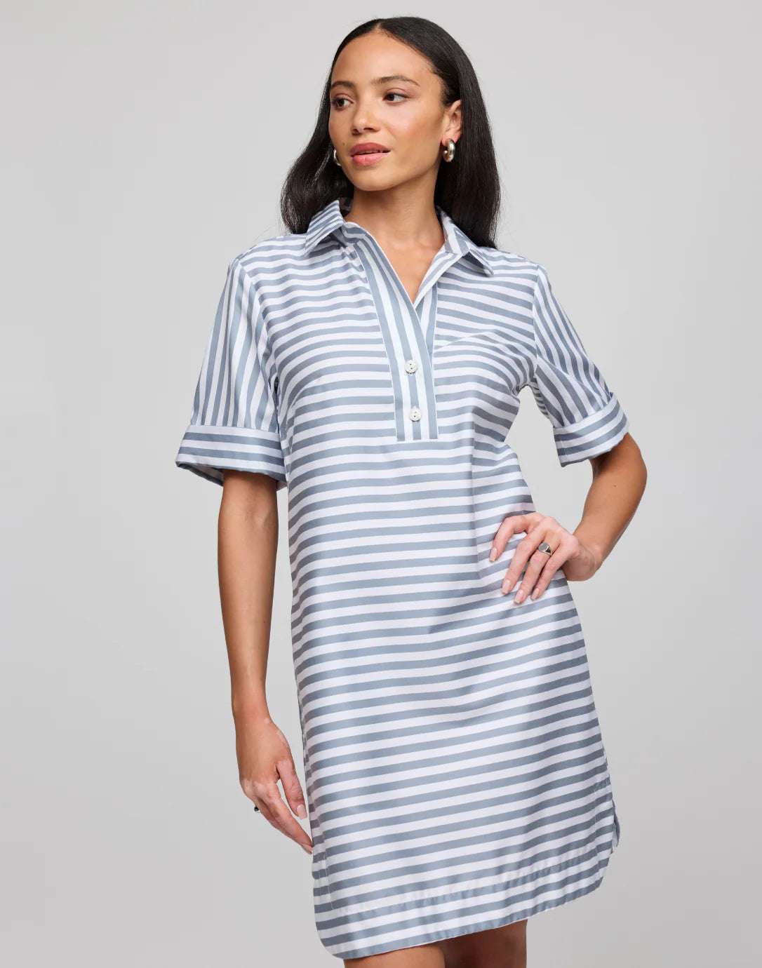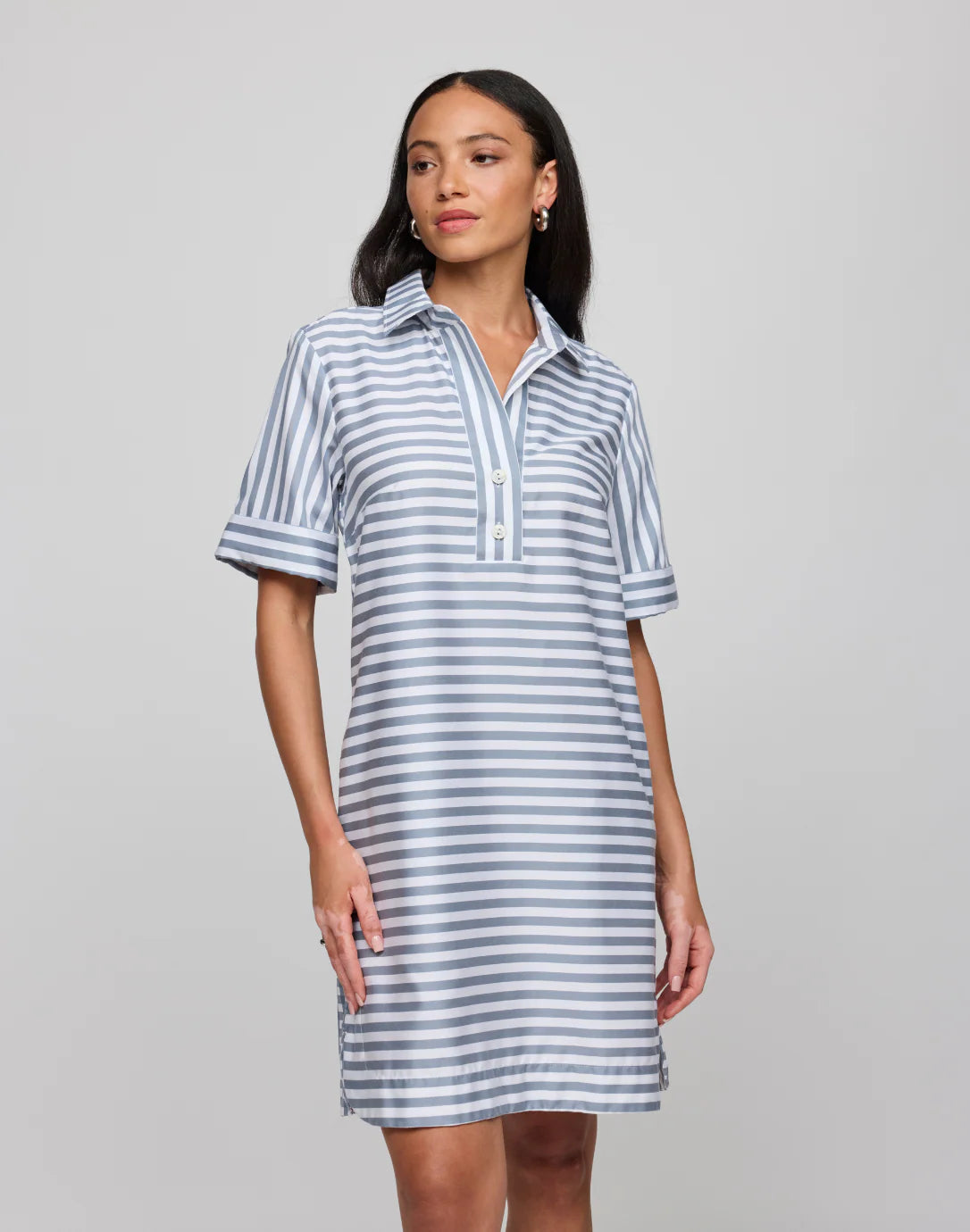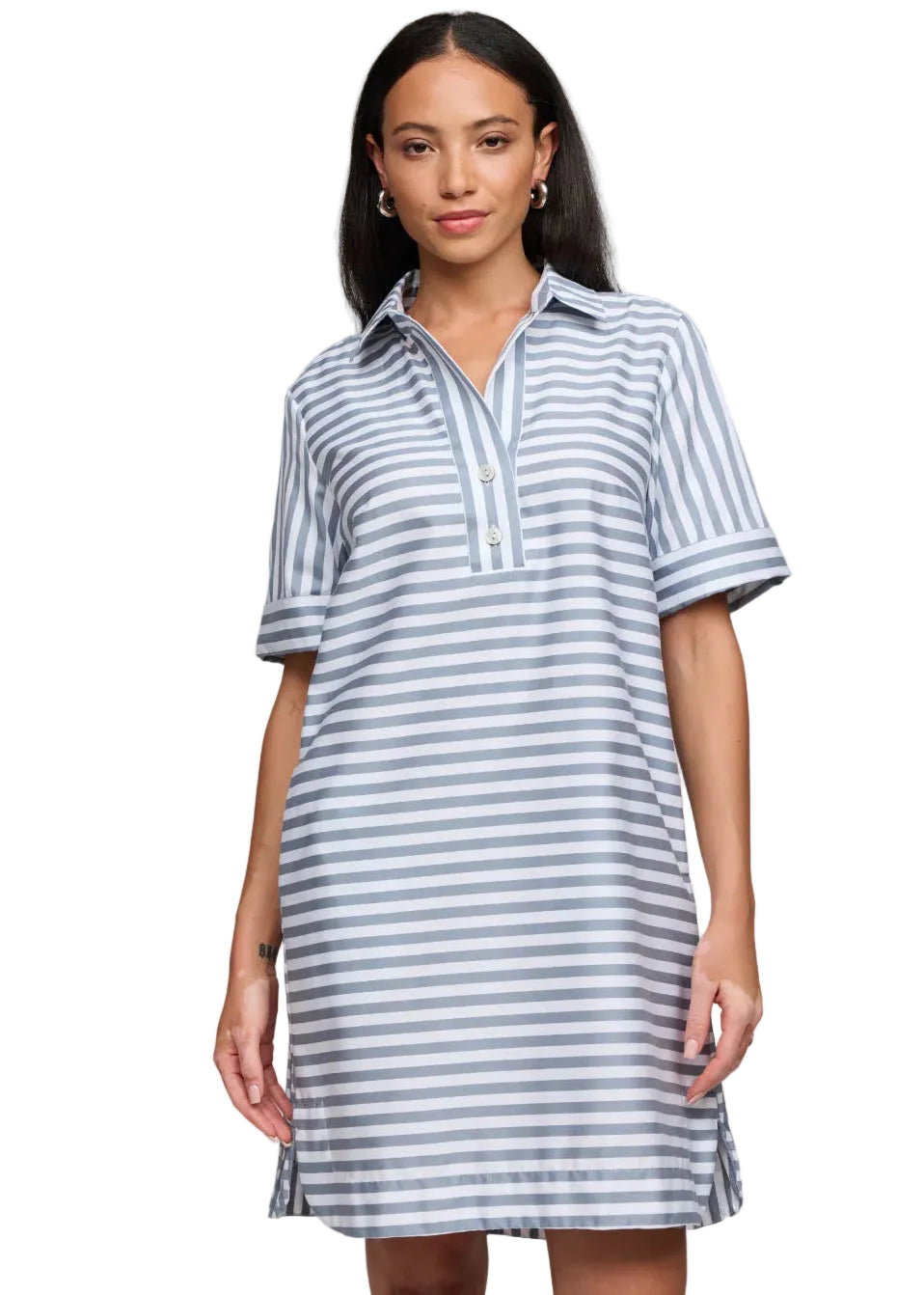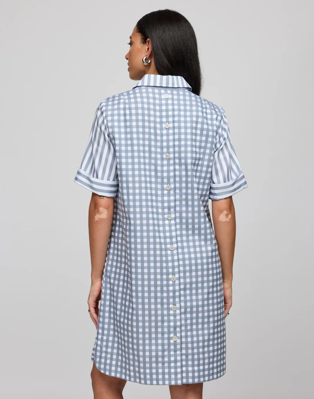 Looking forward to brighter and warmer days, this stripe and color coordinated gingham Aileen dress in short sleeves is your perfect companion.