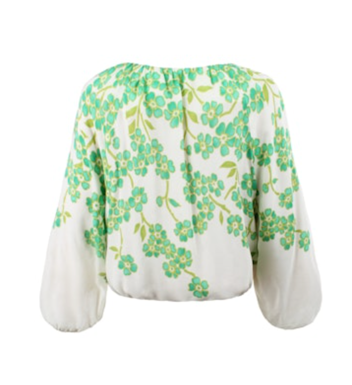 The Cameron Blouse showcases an elegant boat neckline paired with voluminous puff sleeves that add refined dimension to your wardrobe. The striking clover print in natural and lime green tones brings a contemporary botanical aesthetic to this timeless silhouette. Perfect for elevating everyday looks or creating polished layering pieces, this blouse balances classic design with modern flair. The structured sleeve detail frames the shoulders beautifully while maintaining an effortlessly sophisticated appearance.