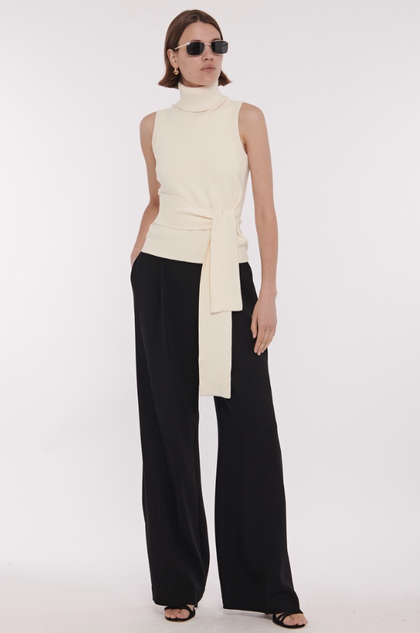 The bestselling Celeste top is crafted from a luxurious, super-soft knit blend, offering both comfort and style. This sleeveless top features a ribbed texture throughout the torso for a flattering fit and showcases the signature Toccin tie-front wrap detail. The elegant turtle neck adds a touch of sophistication, making this knit top perfect for layering or wearing on its own. Style the Celeste turtle neck top with wide-leg pants for an effortlessly chic work look or casual outing.